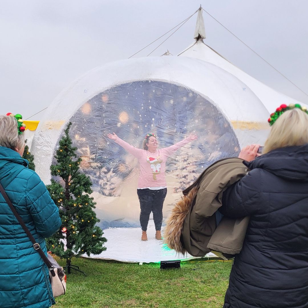 Our Giant Snowglobe is the perfect photo opportunity for families and friends — step inside, strike a pose, and be surrounded by gently swirling snow for a picture-perfect festive moment.